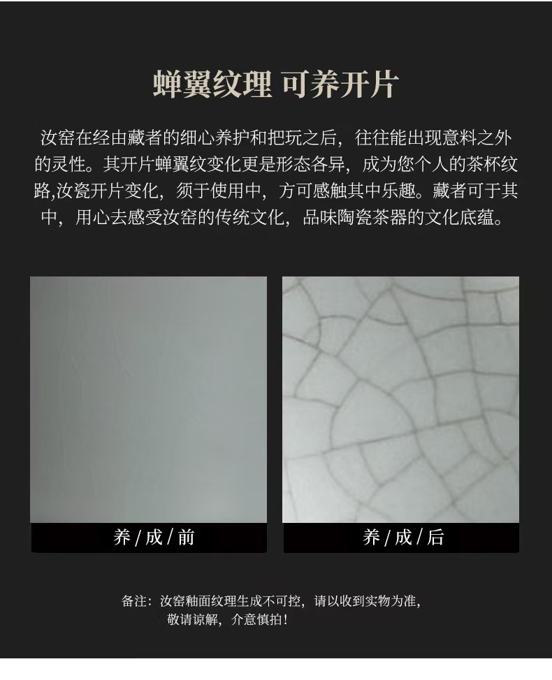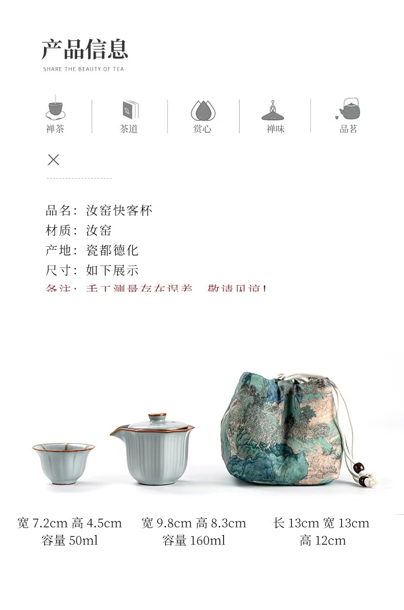 配 制: 1壺 2杯 1茶巾 1旅行袋 規(guī)格:壺:9.8*8cm 杯7.1*4.2cm 材質(zhì):黃汝瓷 布袋 推薦說明:亞黃汝瓷,瑪瑙入釉,蟬翼開片。技術(shù)新品,采用高價優(yōu)質(zhì)瓷土,紫口鐵足。立體浮雕杯身。杯身開片,可養(yǎng)瓷。
